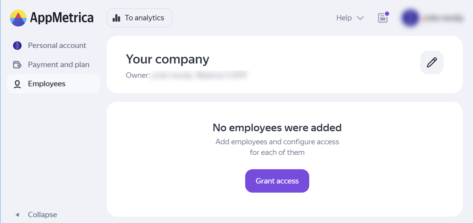 Go to Employees and click Grant access. The Access to the organization window will open.