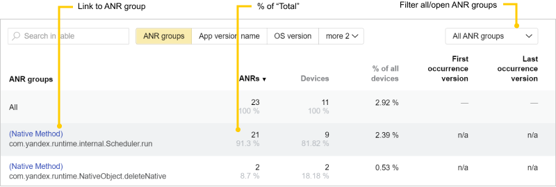 Close fixed ANRs to remove them from the report. Closed ANRs will be automatically reopened if they are detected in versions where they were not previously found.